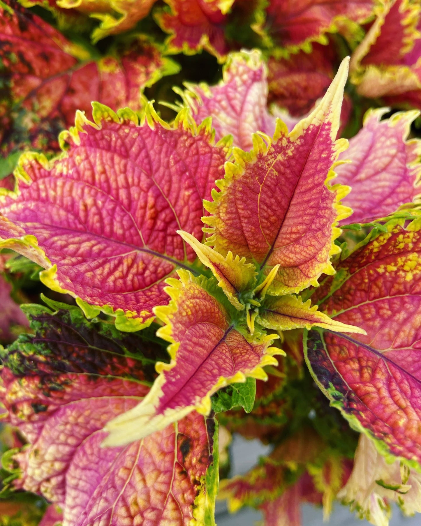Pink Nikolina är en elegant och färgstark palettbladssort (Coleus) med blad som skiftar från ljusrosa till djupt cerise. Denna sort är en favorit bland både samlare och nybörjare tack vare sitt romantiska färgspel och sitt lättodlade växtsätt.