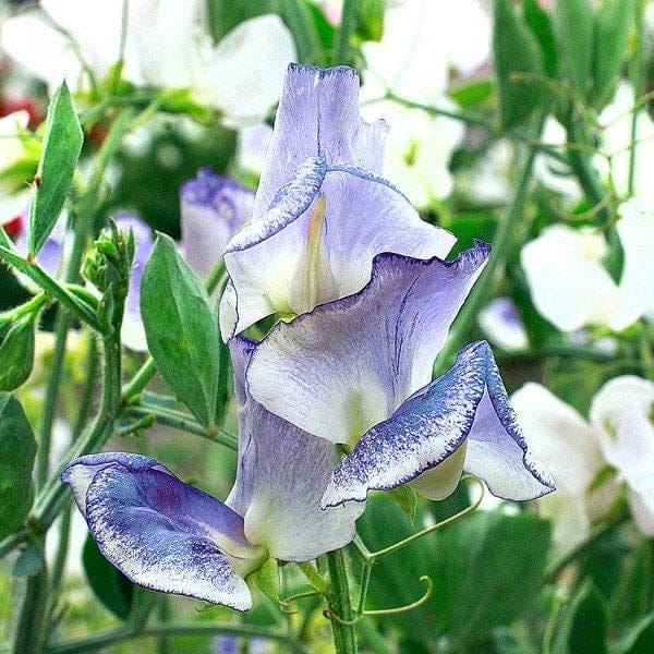 Spencer „Blue Ripple“ ist eine elegante und duftende Duftwicke mit weißen Blütenblättern, die in sanfte Pinselstriche aus Lavendelblau und Violett übergehen. 🎨 Der schimmernde Farbwechsel erzeugt im Garten einen fast aquarellartigen Ausdruck, und die Blüten sitzen auf langen, kräftigen Stielen – perfekt für Blumensträuße.