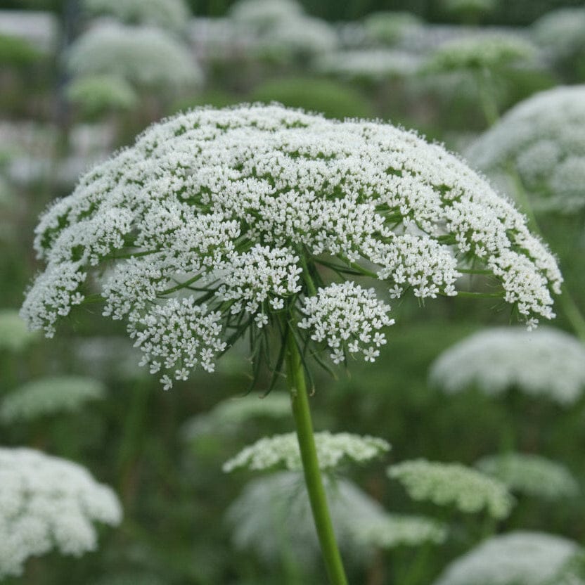 Ammi visnaga ‘Casablanca’ är en robust och arkitektonisk sort med stora, täta blomskärmar i ren vit ton. Den ger en tydlig, modern struktur i buketter och binder ihop färgstarka blommor med ett lugnt, luftigt uttryck.