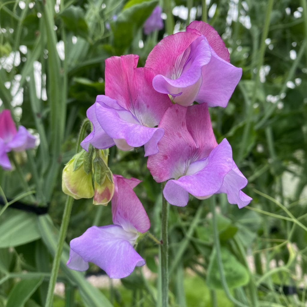 Luktärt ‘Enchanté’ är känd för sin trefärgade blomning där körsbärsrosa, lavendel och blå toner möts i samma kronblad. Sorten är förädlad av Keith Hammett och uppskattas för sina stora blommor, tydliga färgspel och en stark, klassisk doft.